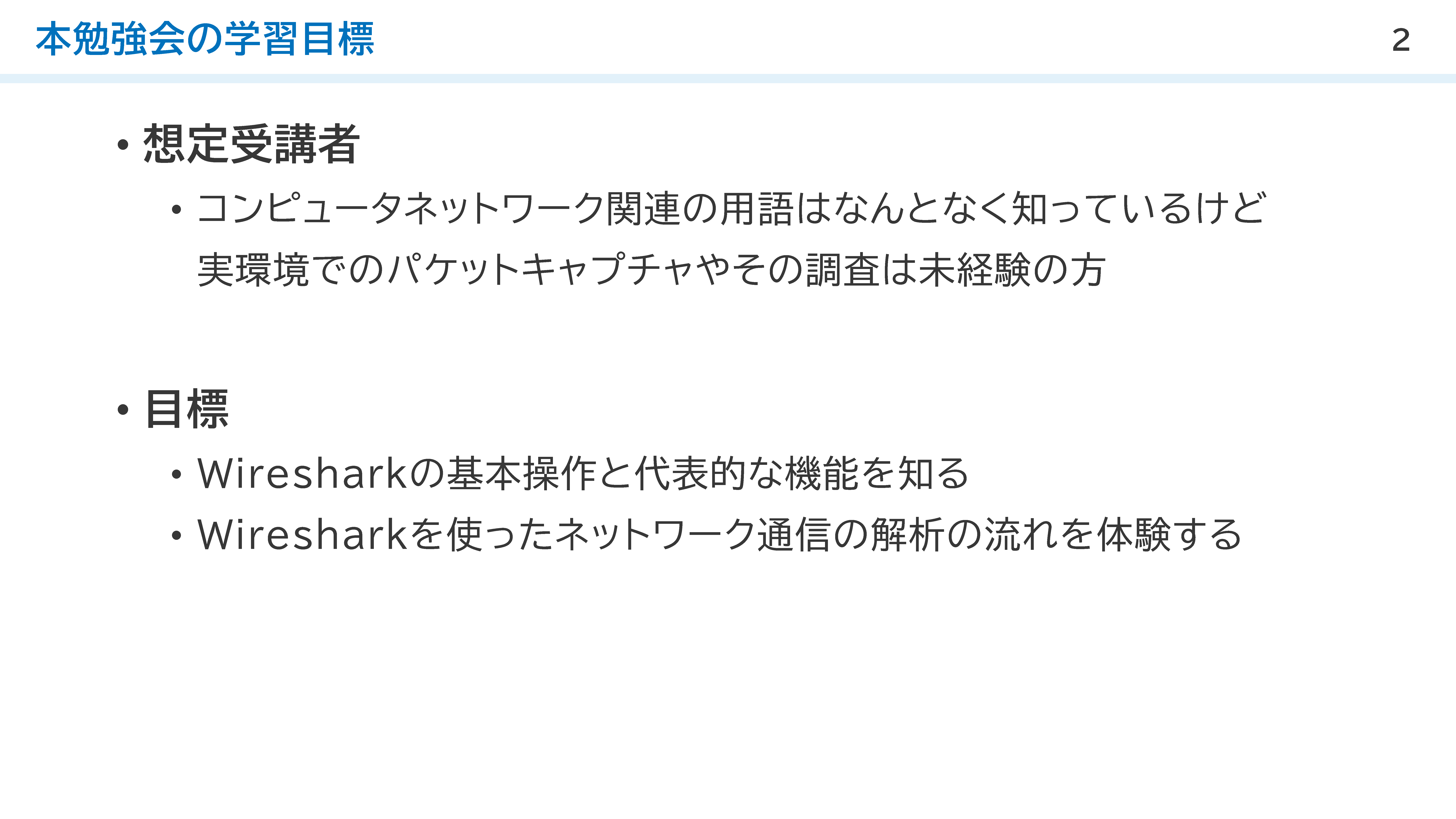 講義タイトル:Wiresharkによるネットワーク通信解析入門 - 基本操作から実践まで -