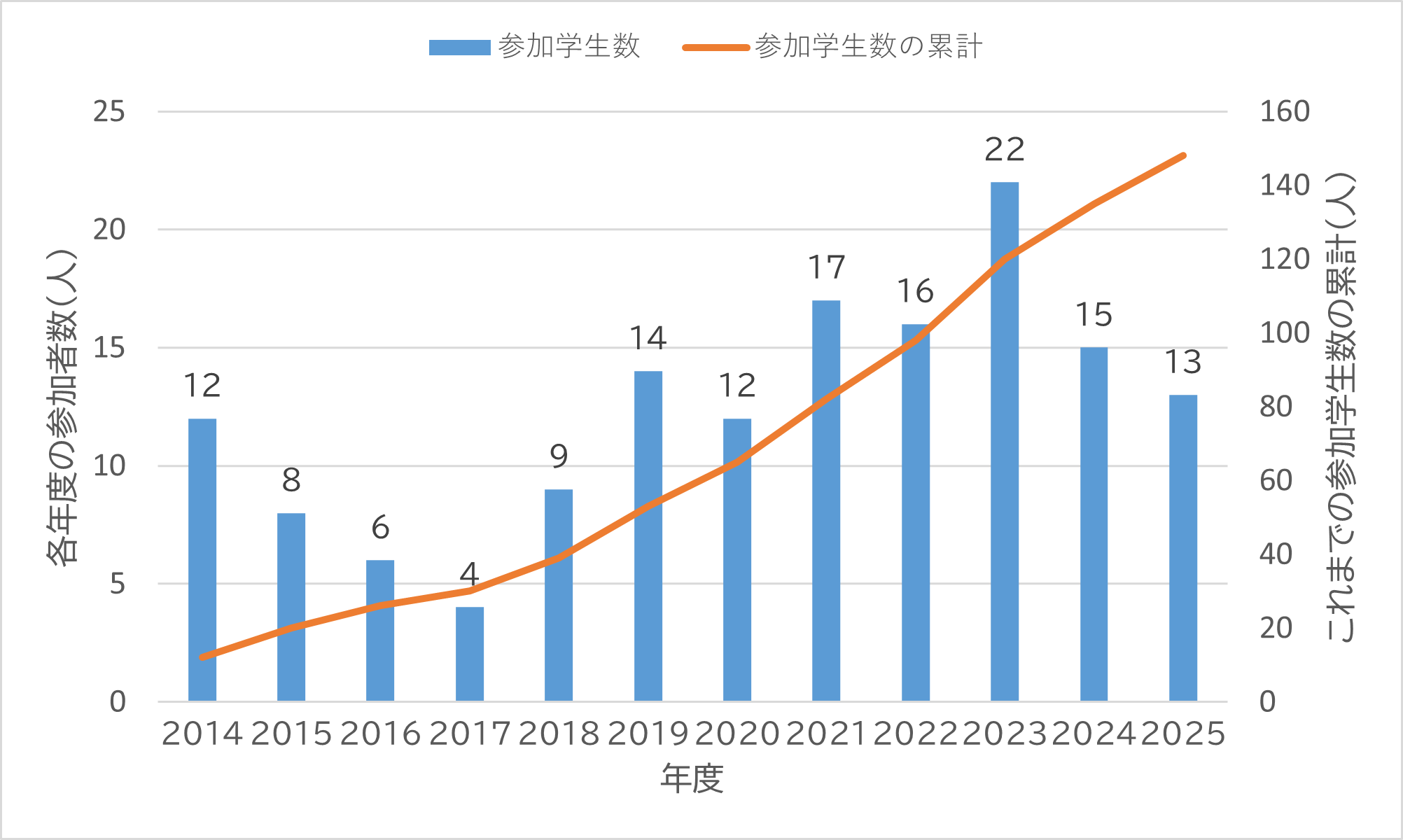 2014年度の活動開始以来,累計で150名弱の情報通信工学課程(2024年度までは情報通信工学科)の学生が活動に参加しています.